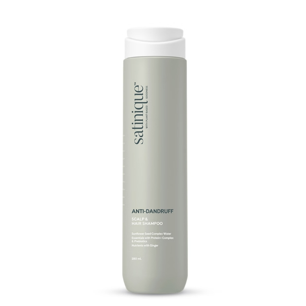 ¡Despídete de la caspa y luce un cabello limpio y radiante con Satinique™! Frescura, equilibrio y confianza en cada lavado.”